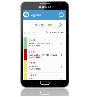 Time’s schedule geo-optimization suite. Available on smartphones and tablets, the application enables delivery staff, technicians and sales reps to consult their diary details in-field and manage information in real time, in both online and off-line mode: viewing appointments, writing and sending off reports, mapping, checking a contact’s address, time-stamping a visit, and so on.